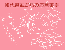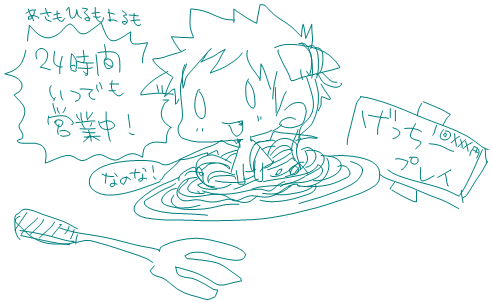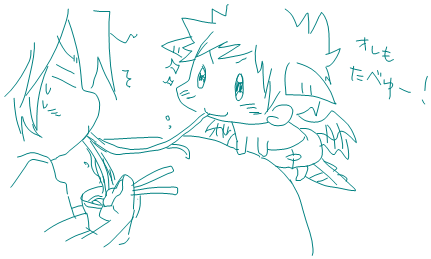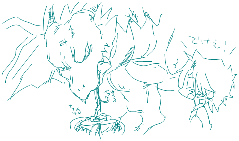 | ええと、また妄想です。 基本的には、どらたけ(ドラゴンな武。半獣ぽい)の妄想なんですけど。 以下の感じで、ゆるく、ゆるく… 【発端】 ・メッセン中、ロボがスパゲッティーを食べてました。 ・それを、モティンがどらたけで描きました。 ・ロボが興奮しました。 【経緯】 ・興奮しすぎたロボが、24山でも見たいと悶えました。 ・モティは焦らしプレイ中… 【目標】 ・24どらたけでもげっちープレイが見たいハァハァ…! ・達成されない気がしてます…モティンー!!! 【諸注意】 ・基本的に、武はベビーでドラゴンが多いです。 ・結構脱線します。 ・全部のログは載せてません。途中結構抜けてます。 ・会話ログは保存してないので、流れは記憶が曖昧です。(まさかの! ・あと、基本的にガッチが残念です。 ・ガッチが残念です。(2回言っとく! あと、「パスタじゃね?」というツッコミはナシの方向でお願いします。 |